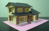 木造2階建て寄棟屋根。右が1/100で左が1/50です。さすがに1/50になると重量感がでてきます。